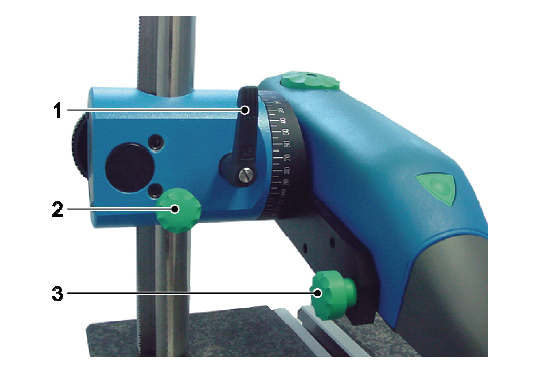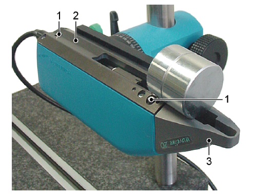 如果工件不能為直線進(jìn)給裝置提供足夠的放置空間,就需要將進(jìn)給裝置安裝至高度可調(diào)的測量支架上。首先固定住W20的適配器套件,使用搖轉(zhuǎn)桿(1)鎖住轉(zhuǎn)子的擺動單元,額外通過擰緊止動螺栓(2)防止轉(zhuǎn)子滑動。再將直線進(jìn)給裝置固定在適配板上,將夾緊螺栓(3)穿過適配板并擰入定位孔中,然后擰緊。