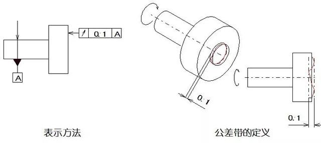 示例2:公差帶是距離為半徑差0.1mm,且與基準(zhǔn)垂直的兩平行平面之間的區(qū)域。