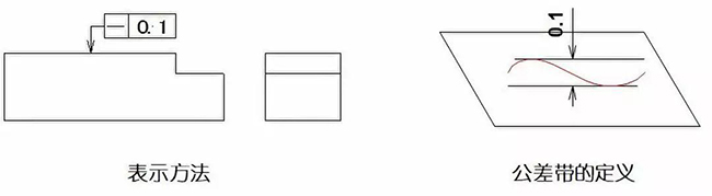 示例1:在給定平面內(nèi),公差帶必須在距離為0.1mm的兩平行直線(xiàn)間的區(qū)域。
