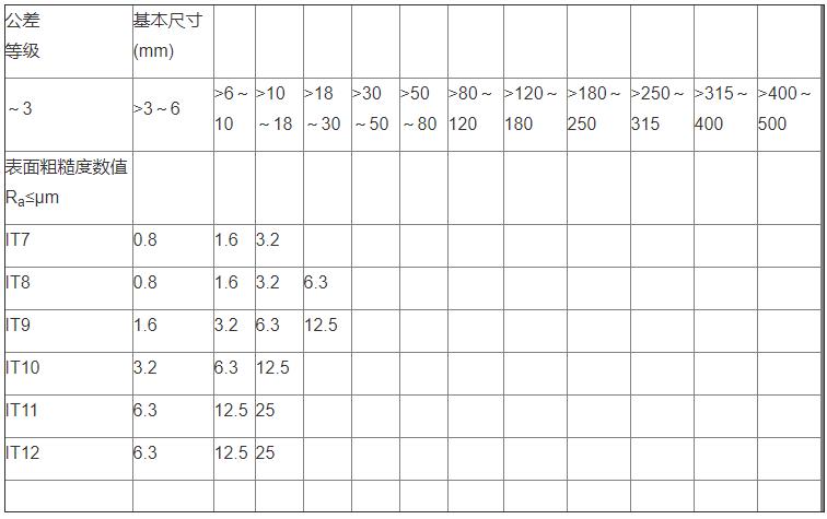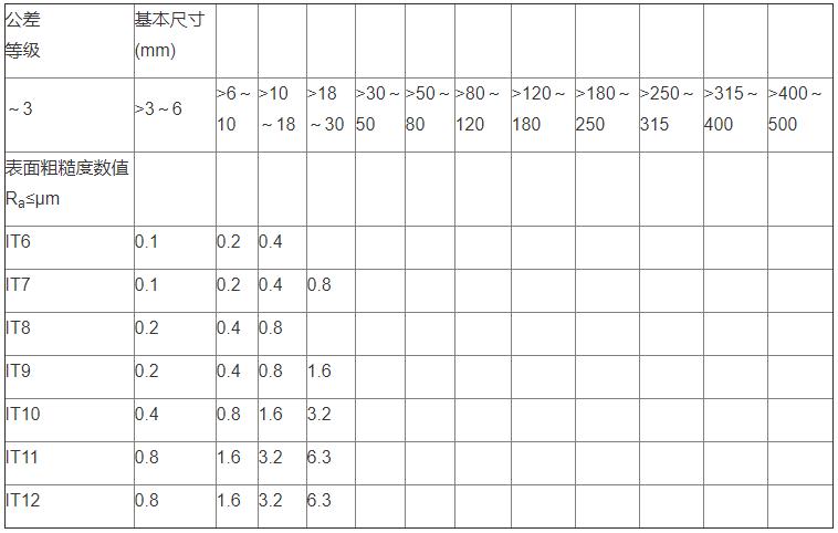 表3 公差等級與表面粗糙度值(用于通用機械)
