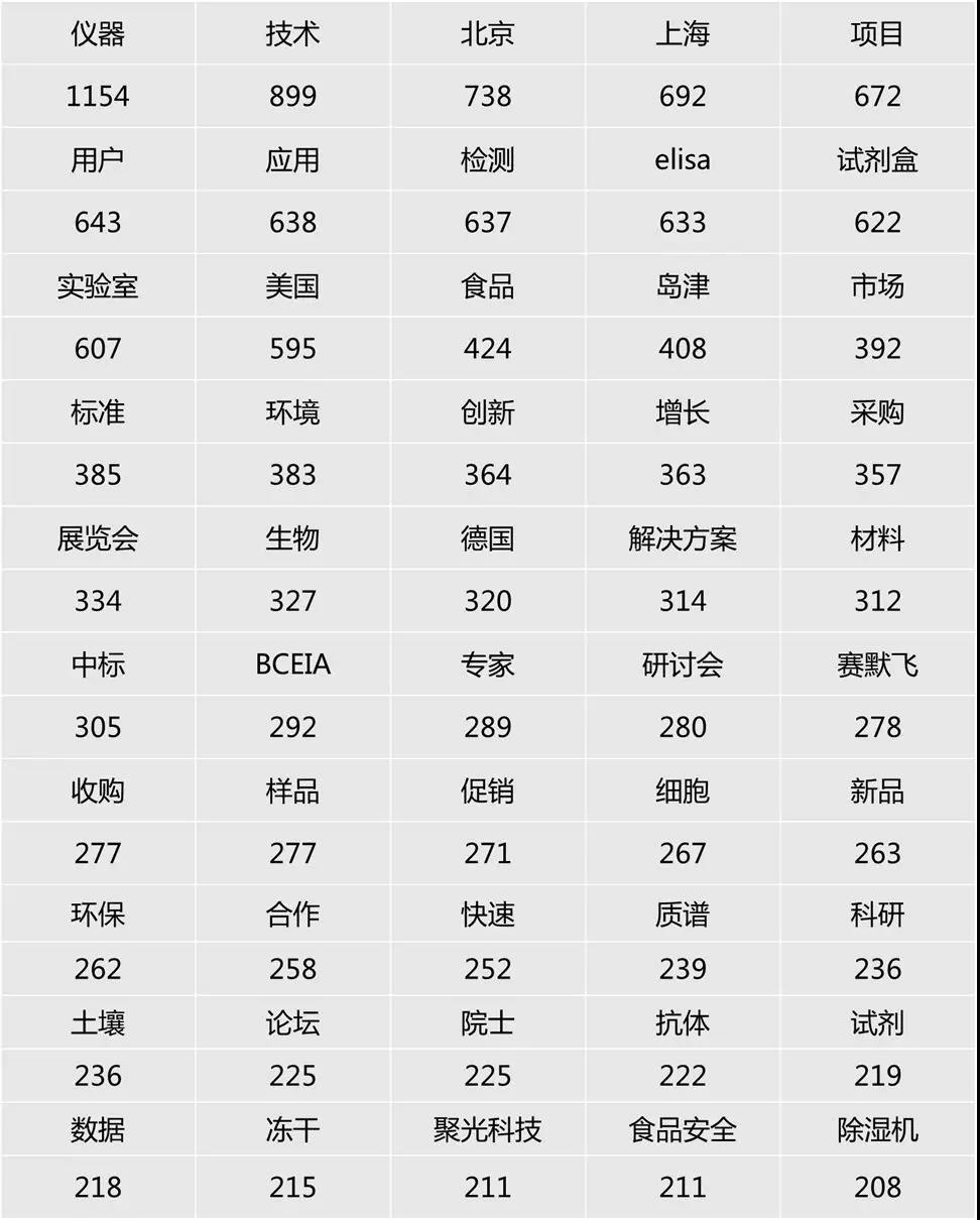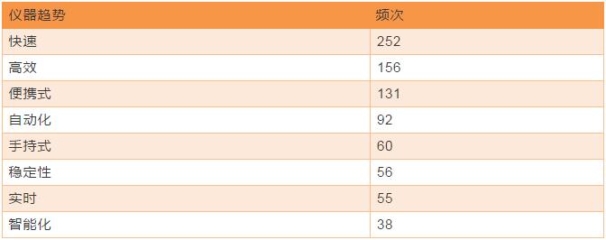 從統(tǒng)計中,我們還看到了用戶對于儀器創(chuàng)新的期盼。快速、高效、穩(wěn)定是分析儀器始終追求的優(yōu)質性能,隨著現(xiàn)場檢測需求的增多,便攜式、自動化、手持式、實時、智能化被提到的頻率越來越高,廠商在宣傳新品時也往往用到這類詞匯。