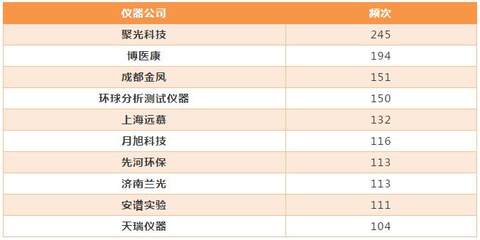 國內儀器公司活躍指數(shù)TOP10