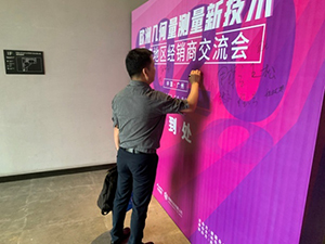 上午9時許,會場已準備就緒,各家經銷商代表陸續(xù)到場簽到,并在會議簽名墻上簽名留念。