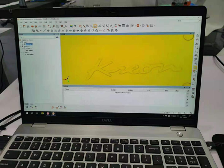 展會現(xiàn)場,法國科瑞朗KREON 關(guān)節(jié)臂三坐標測量機廣受客商青睞,這款設(shè)備配置Skyline wide 激光掃描頭,掃描精度9μm,現(xiàn)場應(yīng)展會觀展客戶要求,鴻華科技有限公司技術(shù)工程師現(xiàn)場演示掃描樣品表面LOGO,并得到清晰的三維圖像。