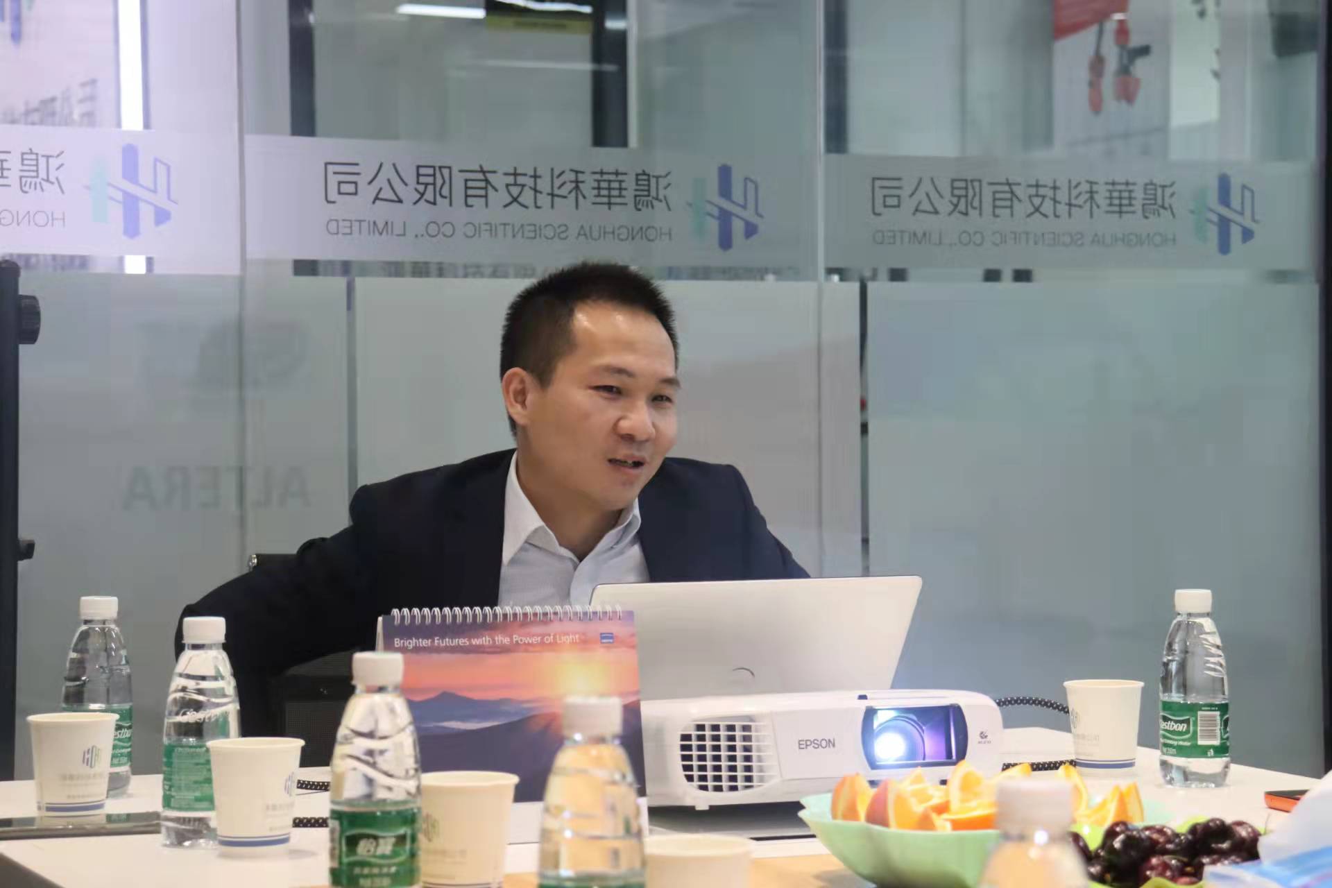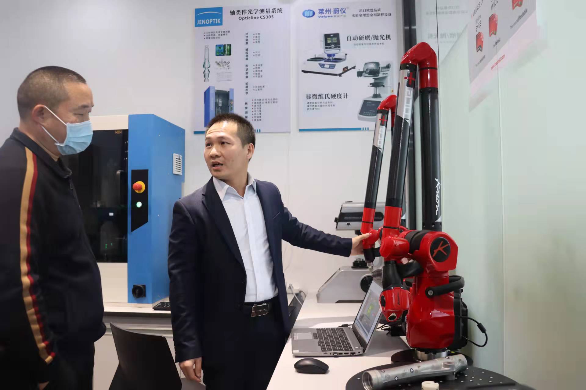 隨后,許高云先生帶領嘉賓們參觀了公司展廳,并向大家介紹了公司各套精密儀器設備展機的性能和應用領域,并就嘉賓們感興趣的應用領域進行了深入的交流和探討。